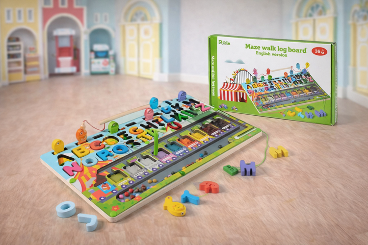 این محصول ترکیبی از ماهیگیری مغناطیسی، پازل حروف انگلیسی، تطبیق رنگها و شمارش است. کودک با بازی کردن، بدون اجبار و آموزش مستقیم، یاد میگیرد.